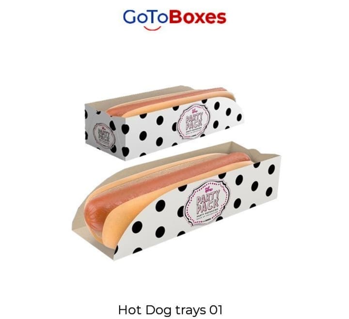 In this era of great competition among food brands, if you want to emerge as one of the favorite food providers in the town then you have to do something extraordinarily striking to catch the attention of the food lovers towards your food items. For this purpose, the packaging of your food commodity will help you a lot. Especially if you want to display your food items, you must be perfect and trendy with the display packaging. Hot Dog Trays are designed in a way that they will crave the customers greatly while placing them on your shelves. You have the liberty to choose the best printing and styling designs for your Hot Dog Trays. GoToBoxes is expert and professional in making these trays for your food brand. In a Hot Dog Tray, you have options in terms of sizes so you may keep more than one hot dog if the tray size is large.