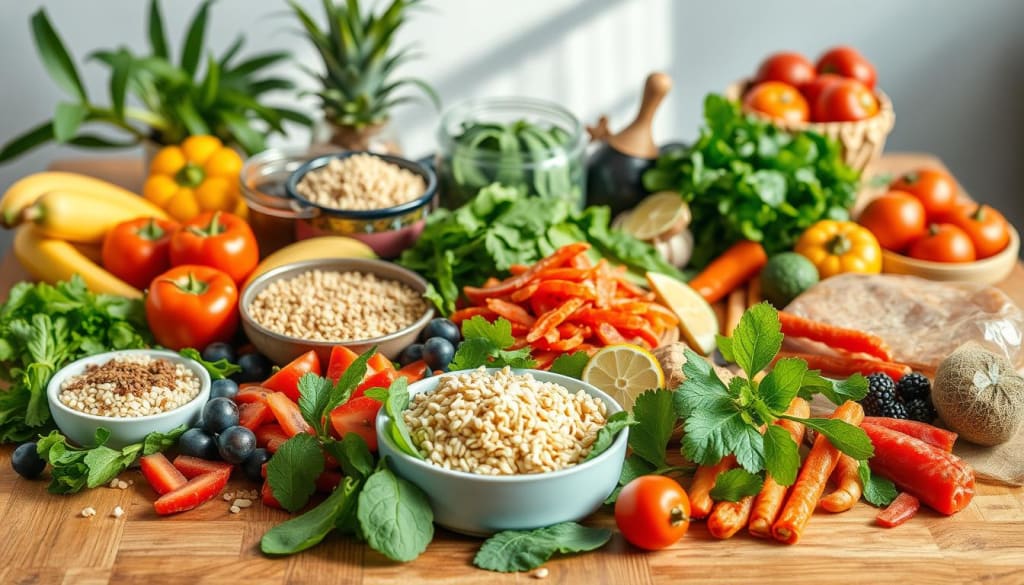 Alongside fresh fruits and vegetables, whole grains and lean proteins are key. They provide a balanced, nourishing diet. Whole grains like quinoa, brown rice, and oats offer complex carbs, fiber, and nutrients. Lean proteins, such as grilled chicken, lentils, and Greek yogurt, aid in muscle growth and repair.