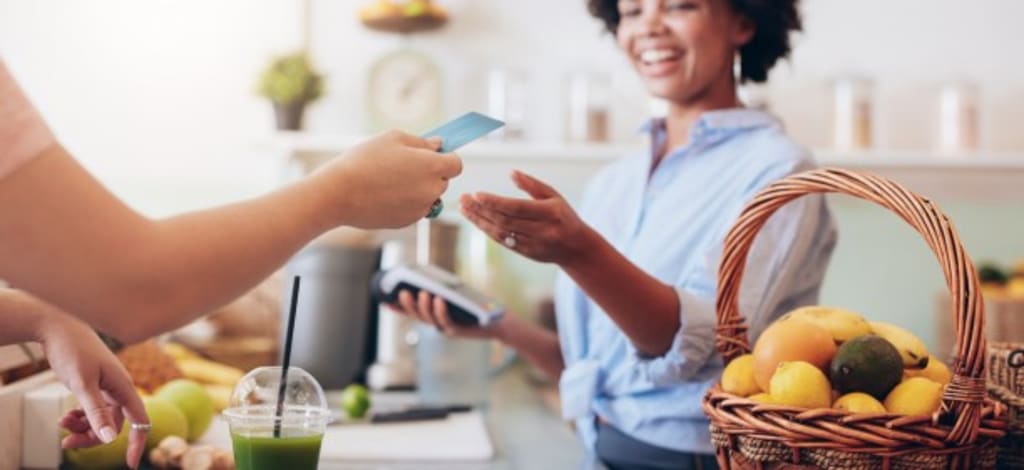 1. Hand your form of payment to the cashier, don't just put it on the counter.