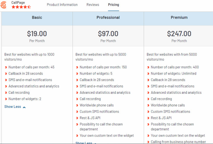 Callpage offers flexible pricing check out the option that best suits your business needs. Also, you can get started with $0/Month with Callpage basic plan after your trial.