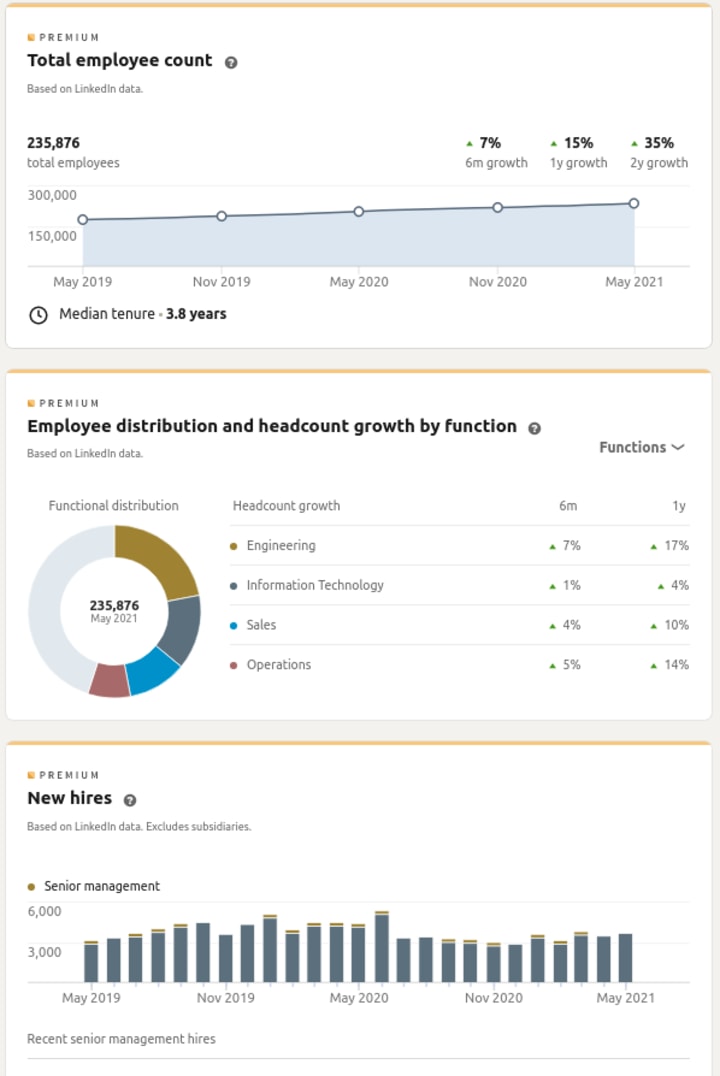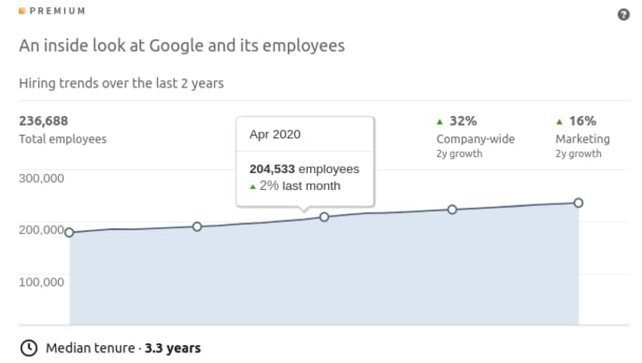 You can get additional information on a company’s hiring statistics over a period of time and which schools and companies employees come from. You can also get what positions they typically hire for, This information might help you get some insight on the company’s hiring decisions, their growth and what positions are in demand, but these are just interesting facts otherwise.