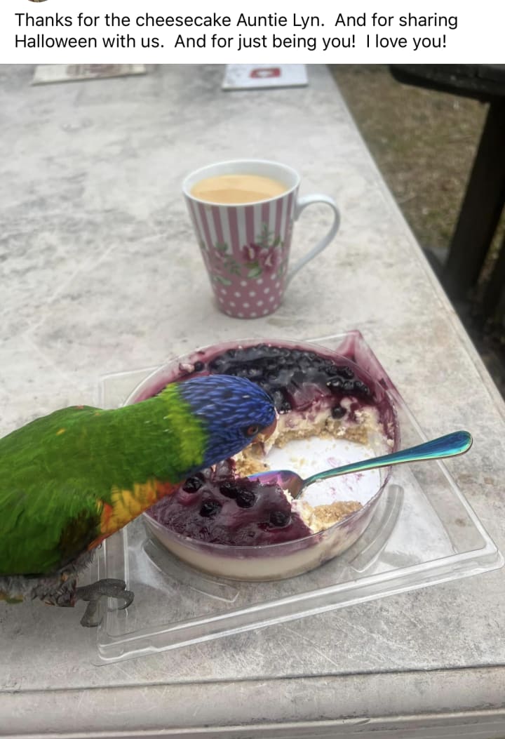 I can quit crying about not having a life partner or grandchildren as I have something far more authentic…a deep deep spiritual love gifted by the gods. My bird and dog and three goldfish…true friends…and two daughters out there somewhere…one of whom randomly lands in my orbit occasionally :-)