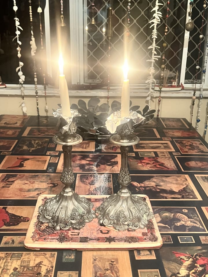 Inspired by listening to the Esoterica talks on the Zohar, Mama T lit the Shabbat candles in honour of the holy Shabbat.