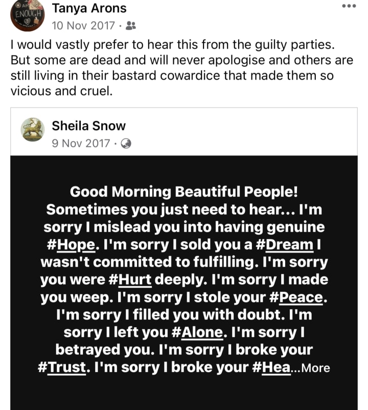 But I have long known how deep the corruption/vilification and systemic abuses go in the highest echelons of our government, education system, health system and in the courts.