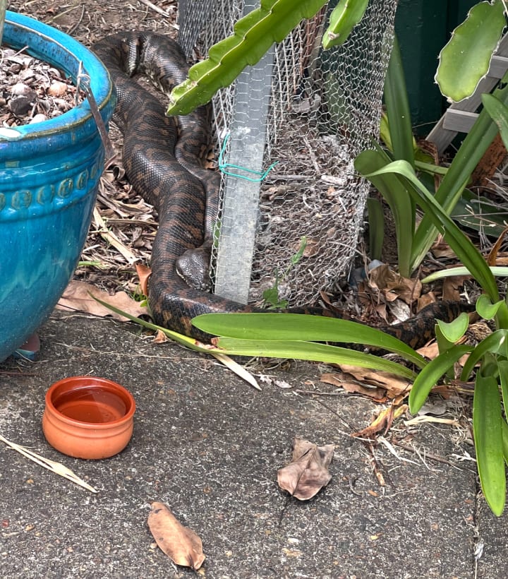 I slept until 2 pm, then got up, cranked up LIVE real loud, fed my fish, had toasted sandwiches and chocolate for breakfast and was feeling content in my garden when Gail and Taly arrived. We had several cups of tea then went to Maccas.