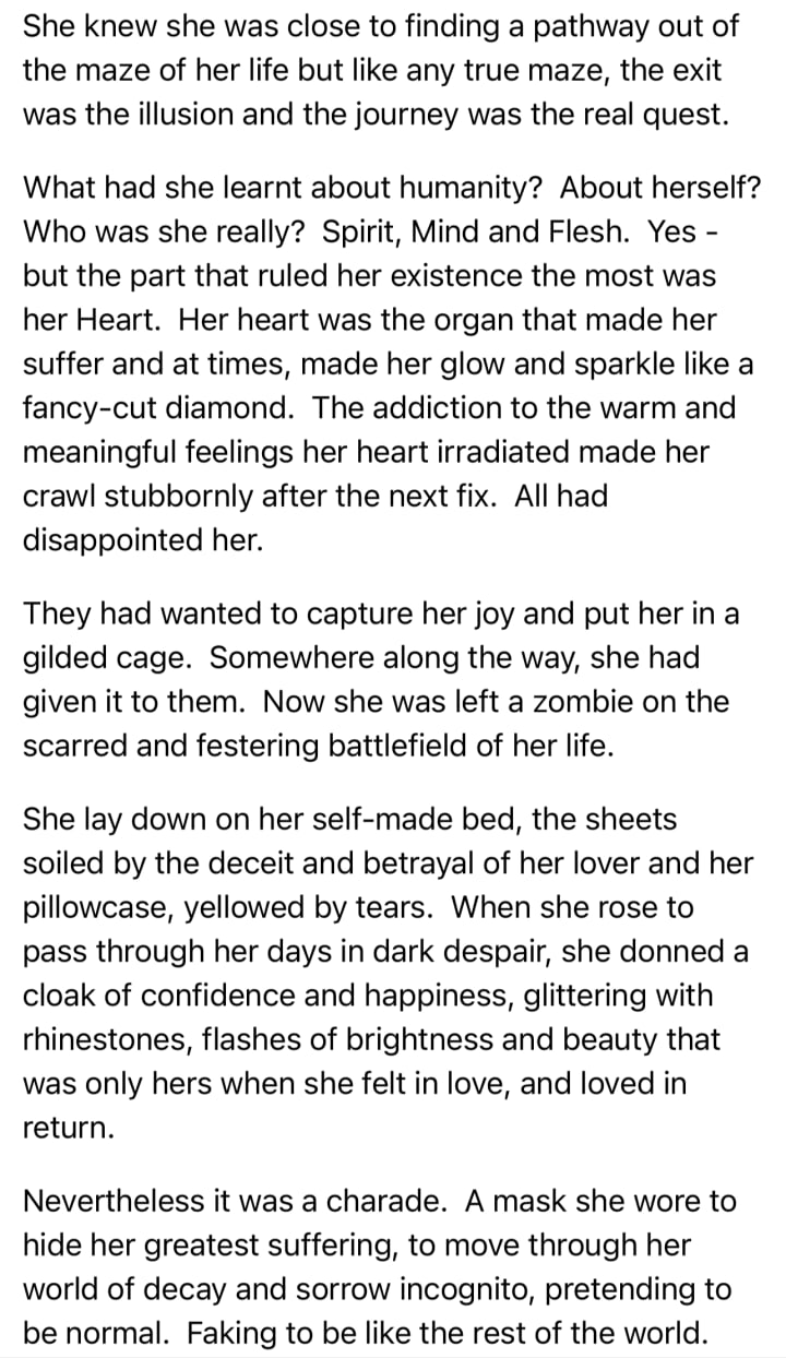 I write about my life experiences. I write about complex ptsd, the agonies, the angst and my post traumatic growth. About Beauty, Truth and Honour and little vignettes of comfort from the spirits that love me: living and dead. I also Dance!