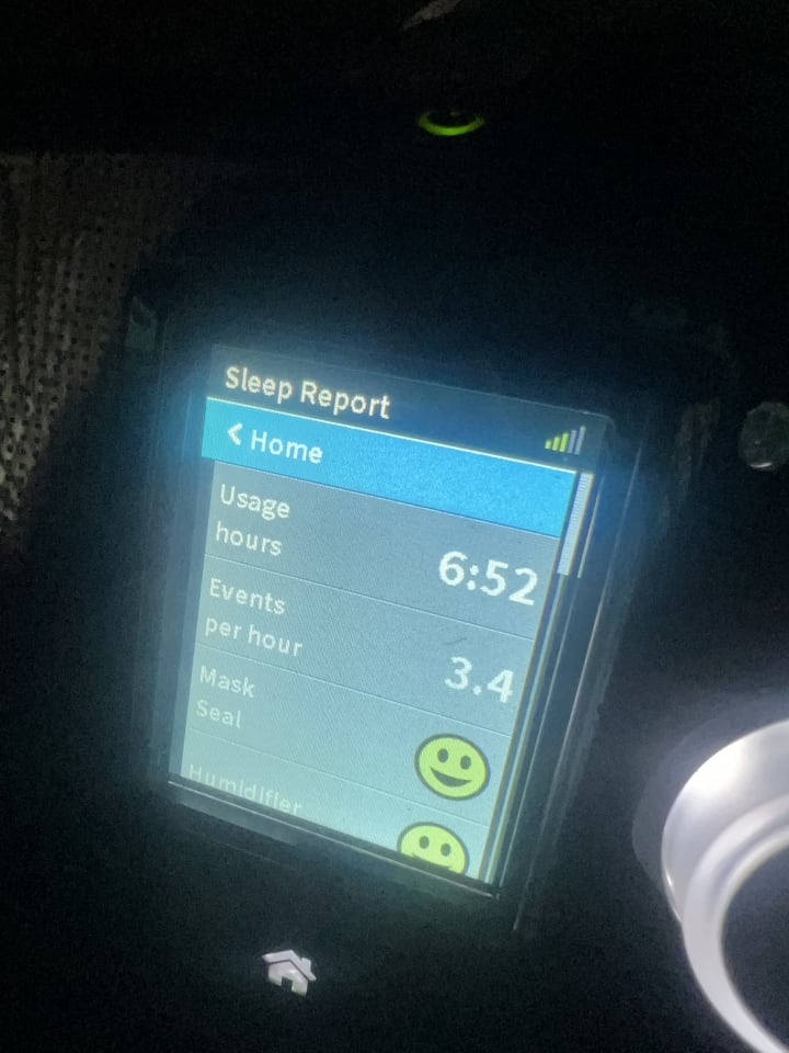 5:47 am I woke up because my resmed had stopped working. Twice during the night. Fortunately I woke up in time before I inhaled too much of my own carbon dioxide. I wonder what is causing my resmed to malfunction? The power had not gone off.