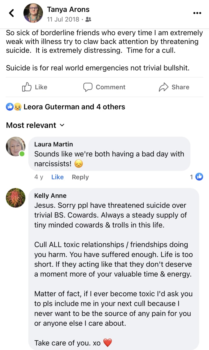 They took and took, exploited, slandered, abused even started abusing my own children (which was why I kept moving house, kept escaping them). With no money and minimal support except for a few good kind decent close friends.