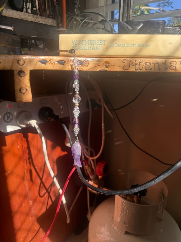 I have cleaned the birdcages. Sitting down to rest a little I admired my crystal and amethyst bookmark sparkling in the sunlight. Pretty. Life is pretty...Happy Mama T!
