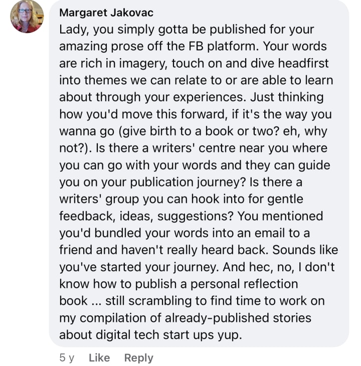 Only recently cobbled together my book from fb updates and really??? Really! Who wants to read all my Angst and all my pain and all my suffering. I try very hard not to kill myself when I pore over it.