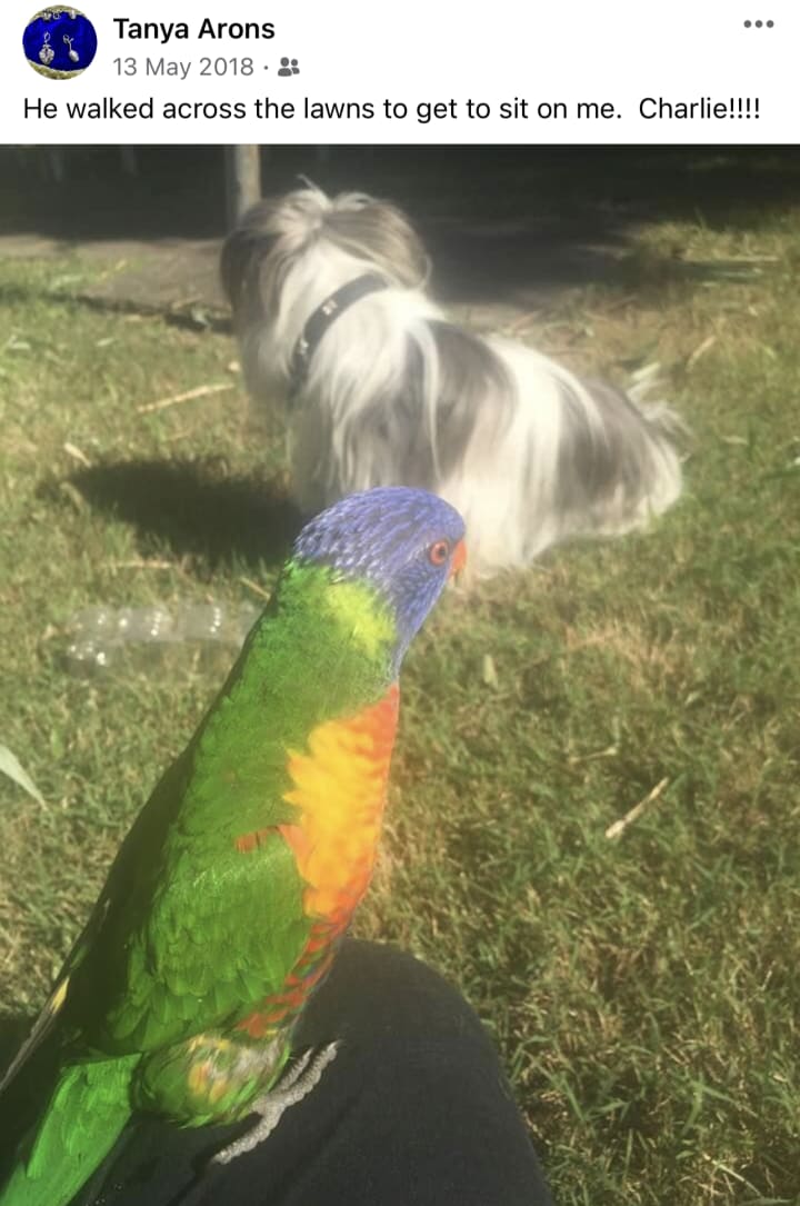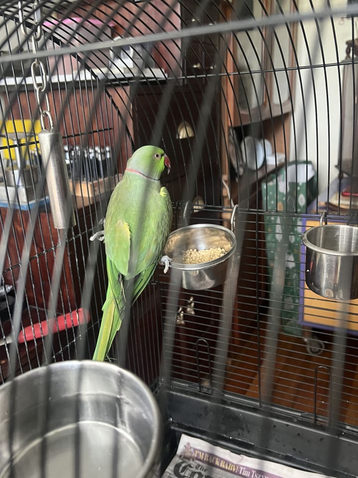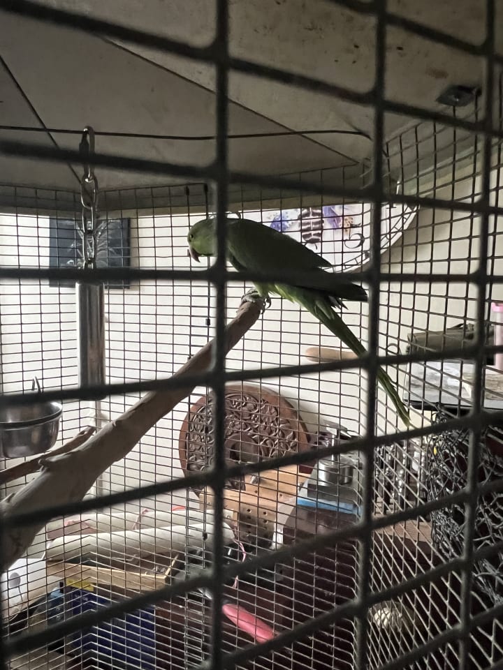 A big Welcome to Sacred Space @Titania’s Realm!!! Kermie the Indian Ring neck and Beau the Cockatiel. Muahhh!