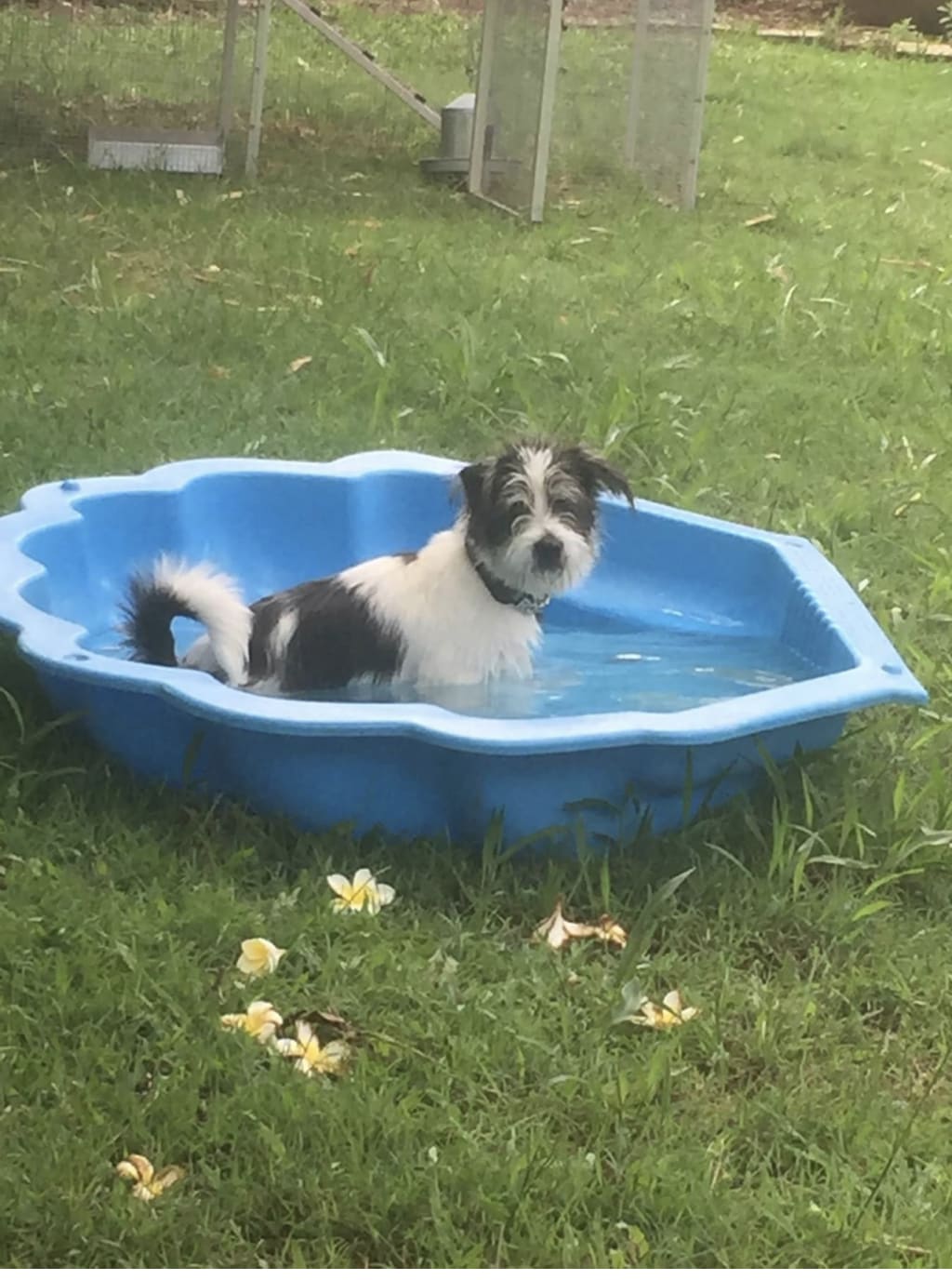It’s another scathing hot day. But… the dog has been bathed, and had a bit of a fur trim. Charley’s inside cage has been taken outside, stripped of all its paraphernalia and scrubbed, then put back together. That took most of my morning. I also cleaned out the bird bath and filled it with fresh water.