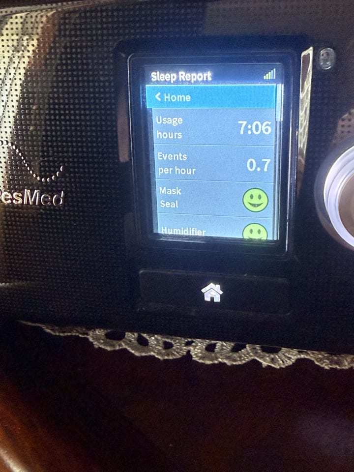 The lovely young man told me my sleep results might be backsliding due to leakage in the mask and if they don’t improve I may need to see the sleep specialist to adjust the pressures. (More money ughhh!)