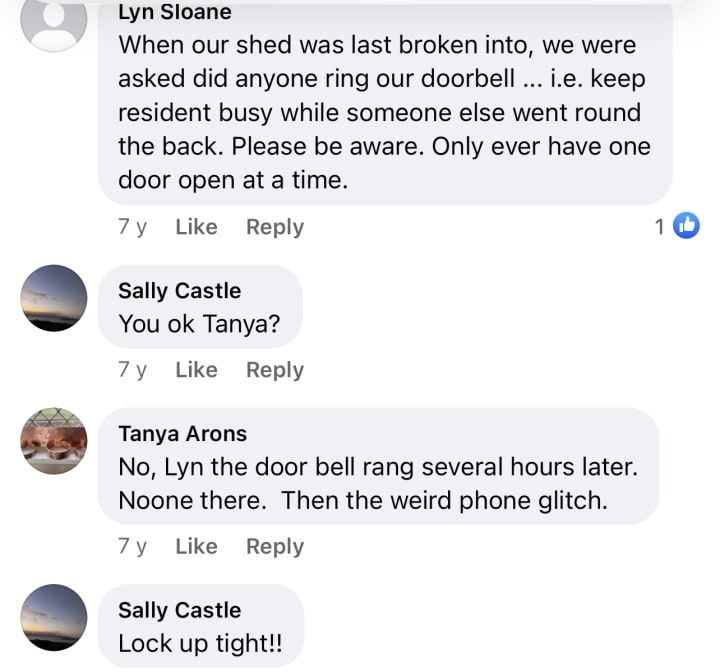 8.16 pm feeling creeped out. Today when I went to my hairdresser, I shut my front door behind me. The deadlock was not snibbed and the door shut with a thud.