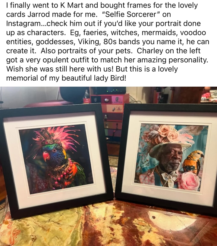I had had a 3 hour nap to recharge my batteries after last night's wildness. So it was an effort to walk around but Beauregard really needed it and Charlie likes hitchhiking on my shoulder. He hates the noisy main road though. But I talked him through it.