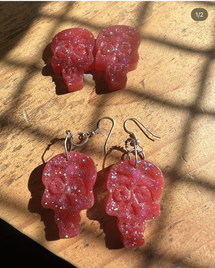 Today’s creativity. Coral pink resin skull earrings. (Not sterling silver! Base metal hooks and wire). “Come out…come out…to play. Your prison is illusory, a construction of metal and mind. You were/are always Free…to choose…to love…to Be!”