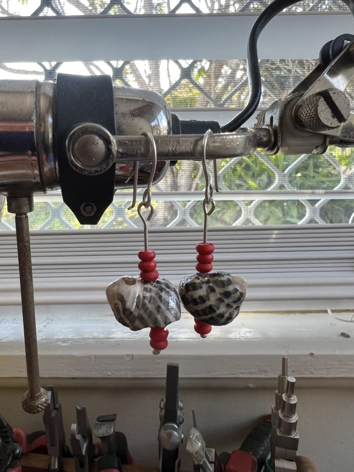 #titaniasrealm #shellearrings #foragedatClevelandPoint #sterlingsilver #redbeads