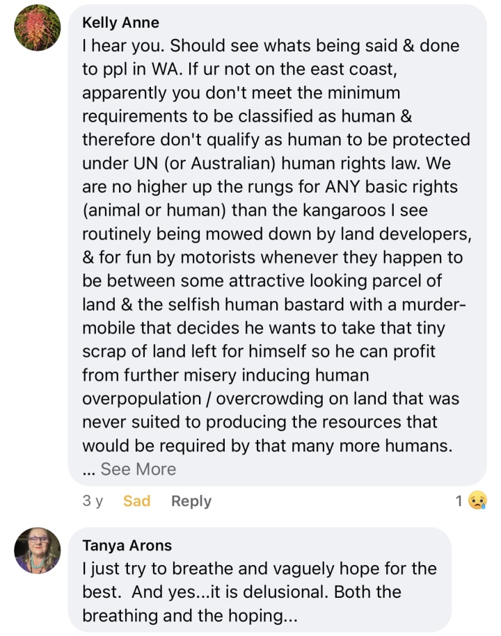 Don’t you dare ever get sick or vulnerable in Australia, mate. If they can’t fuck you, they treat you like an animal and leave you for dead. If you have the chutzpah to say no to abusive husbands/lovers/doctors and big Daddy the State, they leave you to recover on your own post surgery and if you are stupid like me, you keep choosing life and they keep grinding you down.