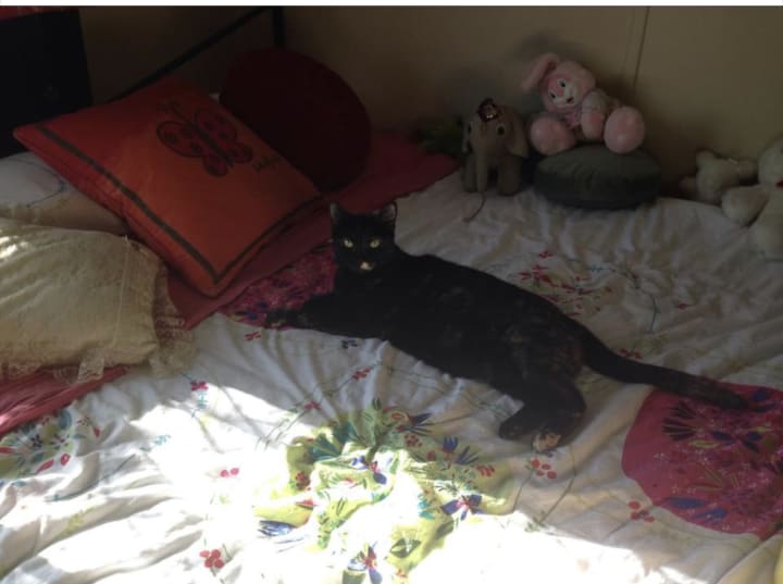 Penny has taken over the guest room which was previously Zulu's Domain. He would not be happy about this! All Hail the new Queen of Holland Park. She has finally claimed her Boudoir! (When she is not sleeping beside De Mama that is!)