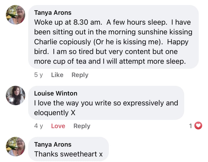 One I love very much came to watch me again last night. True loves but strange and fearful of the power of The Tanya’s unconditional (but not blind!) Love.