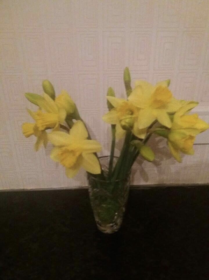 It is a glorious morning. Louise sent me a photo of her gorgeous daffodils this morning. Spring has sprung in England. :-)