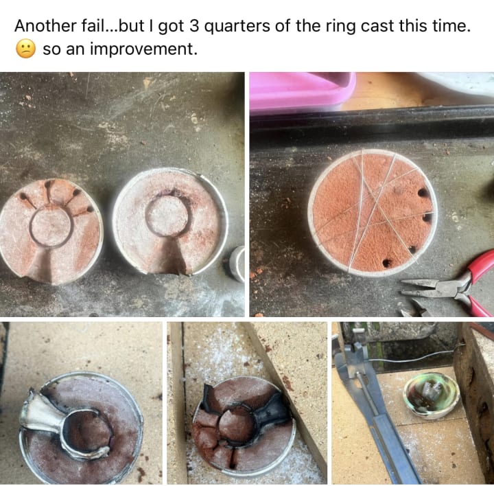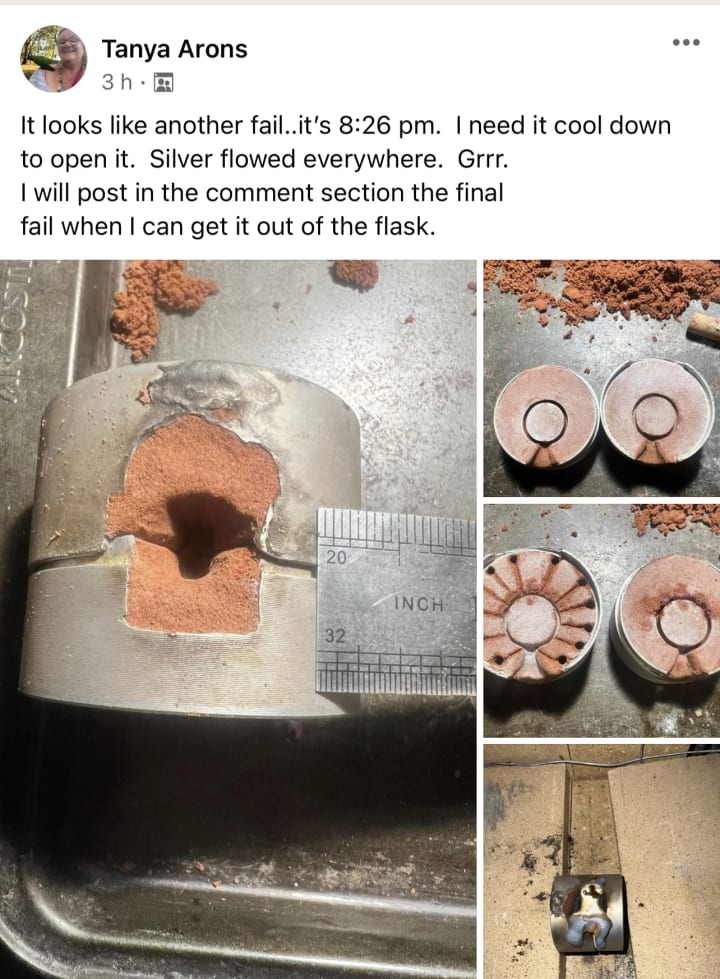 It was 37 degrees Celsius today. I went outside to my soldering station and melted silver. Both attempts at casting failed today. I am very upset. Three failed attempts now!