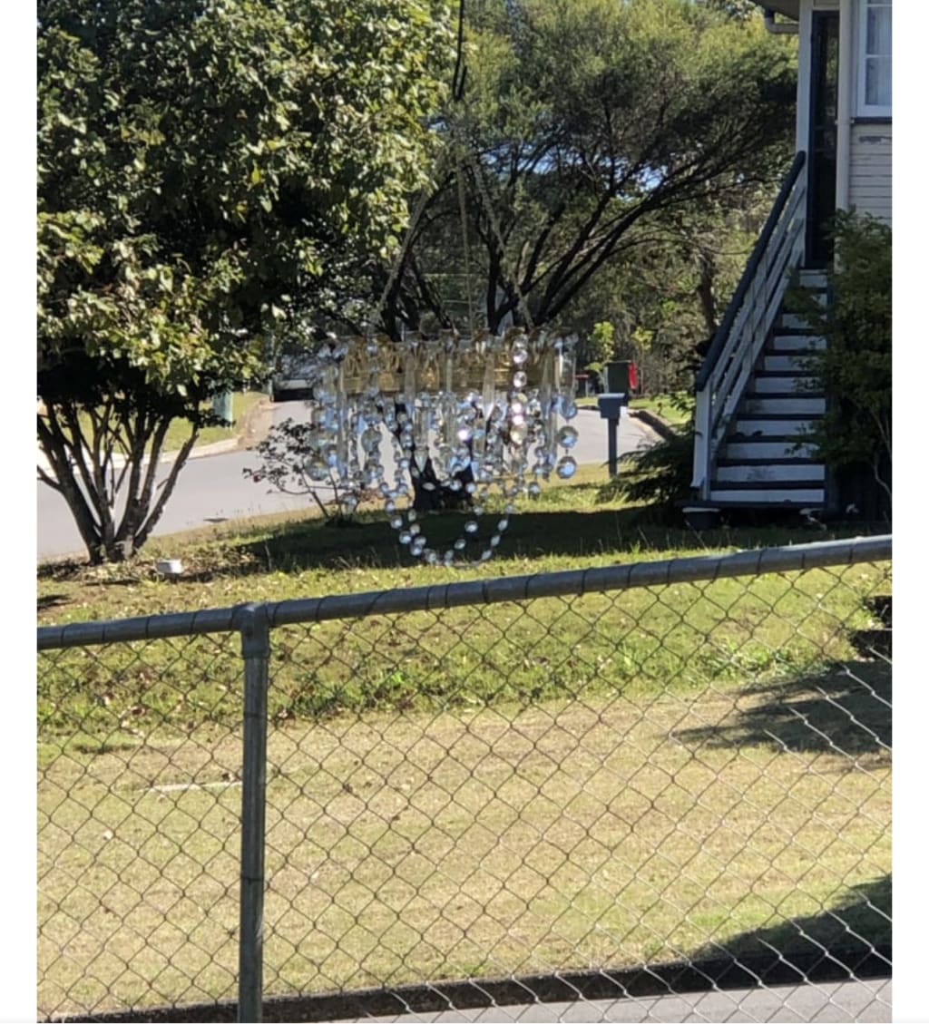 I hung up the suncatcher I made from my rescued remains of my rusted chandelier.