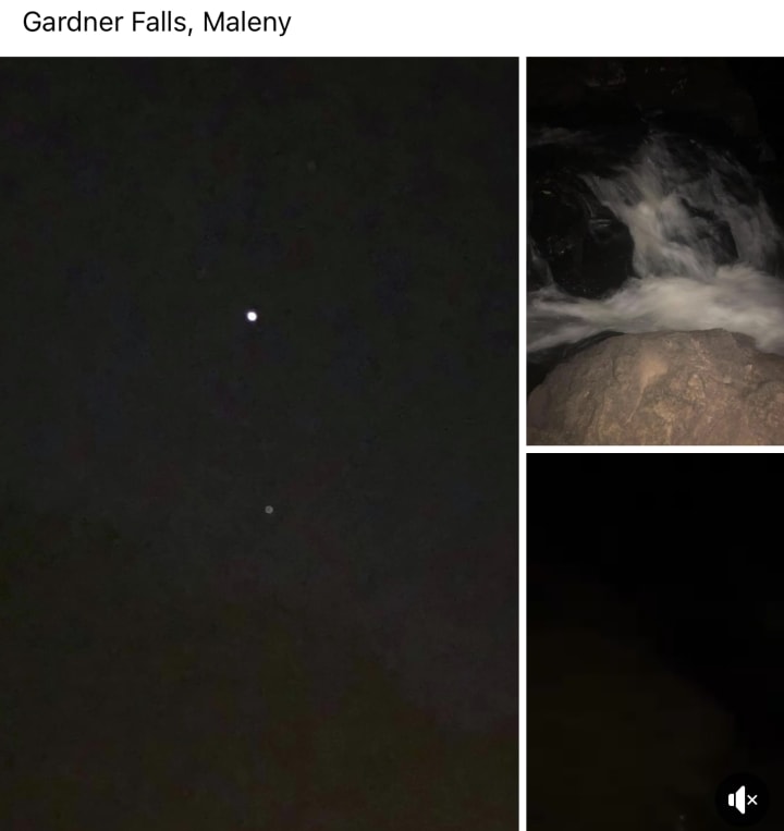 View of Saturn and Jupiter in the night sky above Gardner Falls. 18 August 2019