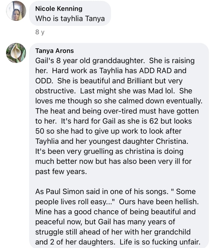 So the estranged daughter, The Tanya got up one more time and did right by Gisela. I lost another 4 years to her until her eventual death 18 months later and then the final slog of that atrocious Will that I only fought against because I deserved better. The vitriolic lies were enough to kill me.