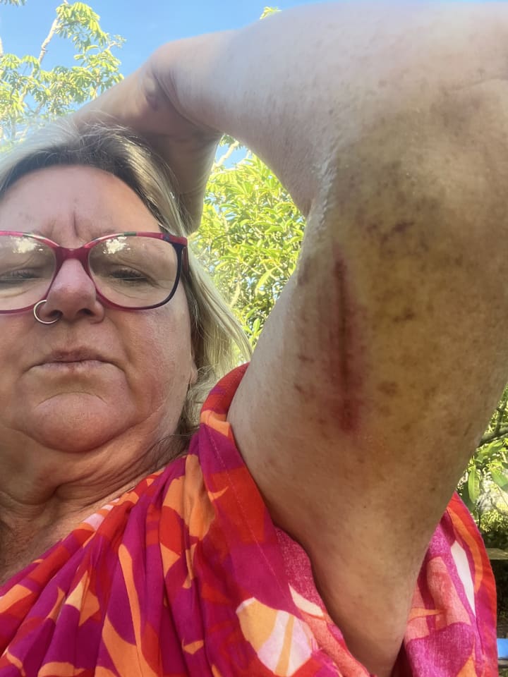 I have started (only last evening), taking arnica as a mouth spray to try to heal the immense bruising around the wound. I was gratified to see a message from one of my most powerful most loving shaman friends who is sending me healing. Thank you Mon Ami. I am grateful.