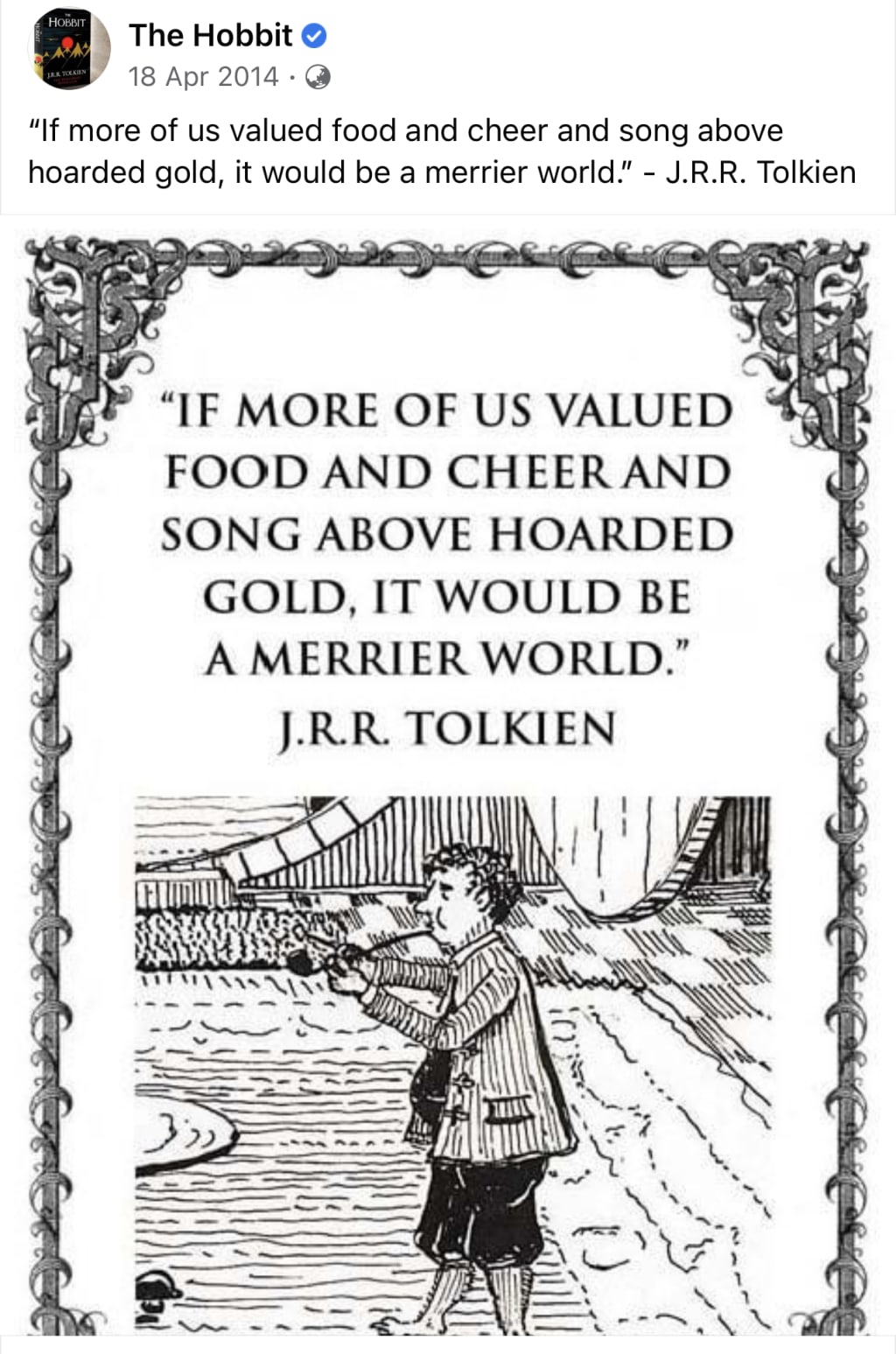 Eat drink and be merry. For tomorrow we die... or in a thousand tomorrows we transform our life force into the other dimension. But just for today I cleave to my Hobbitses one. Short fat and unloved except by a few rare birds.