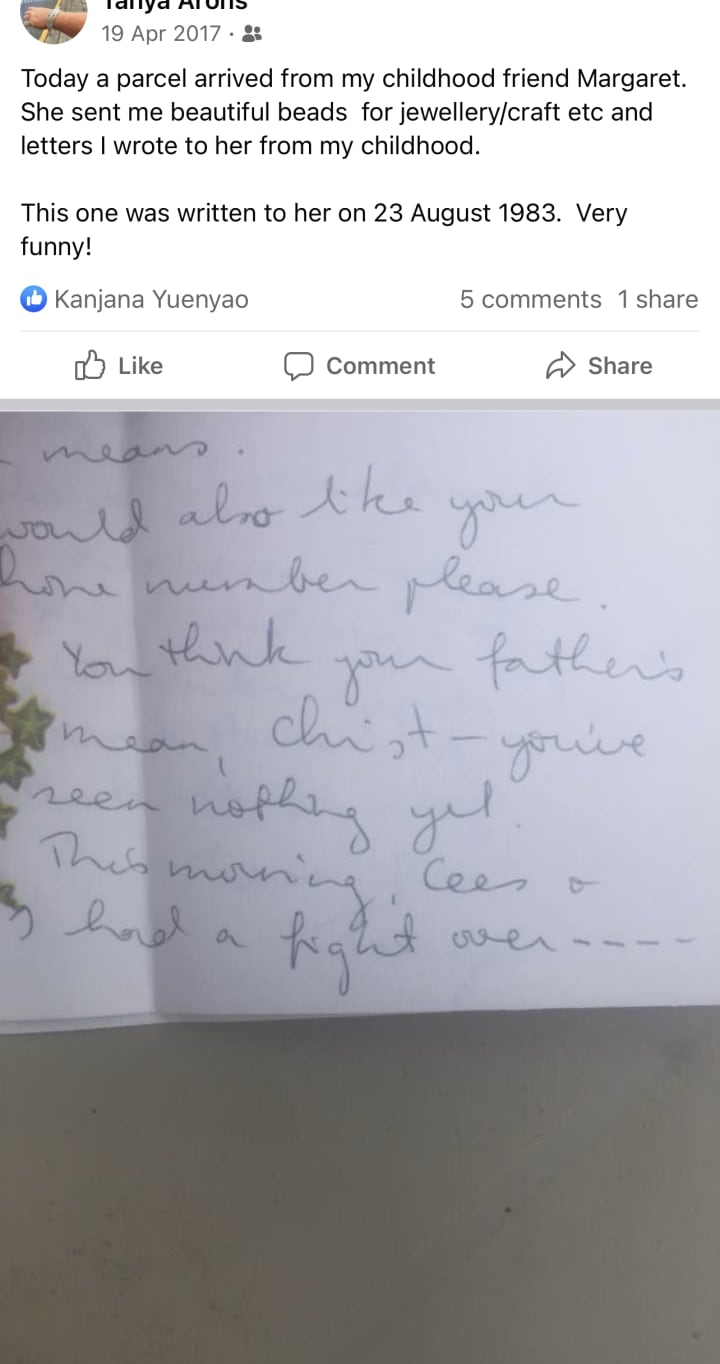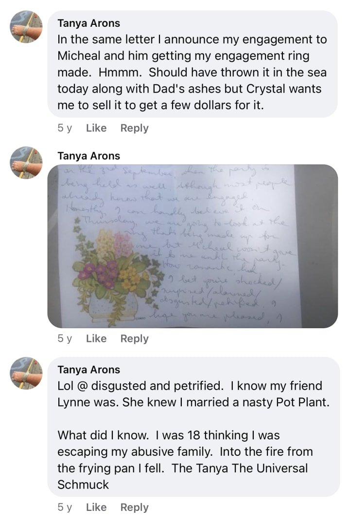 Even reading a letter I wrote to Margaret when I was 15 (she returned all my letters!) in which I talked about the financial abuse I was experiencing (I wrote Cees a cheque for $5 for a teabag he wanted me to reuse three times so I fought him over it!)