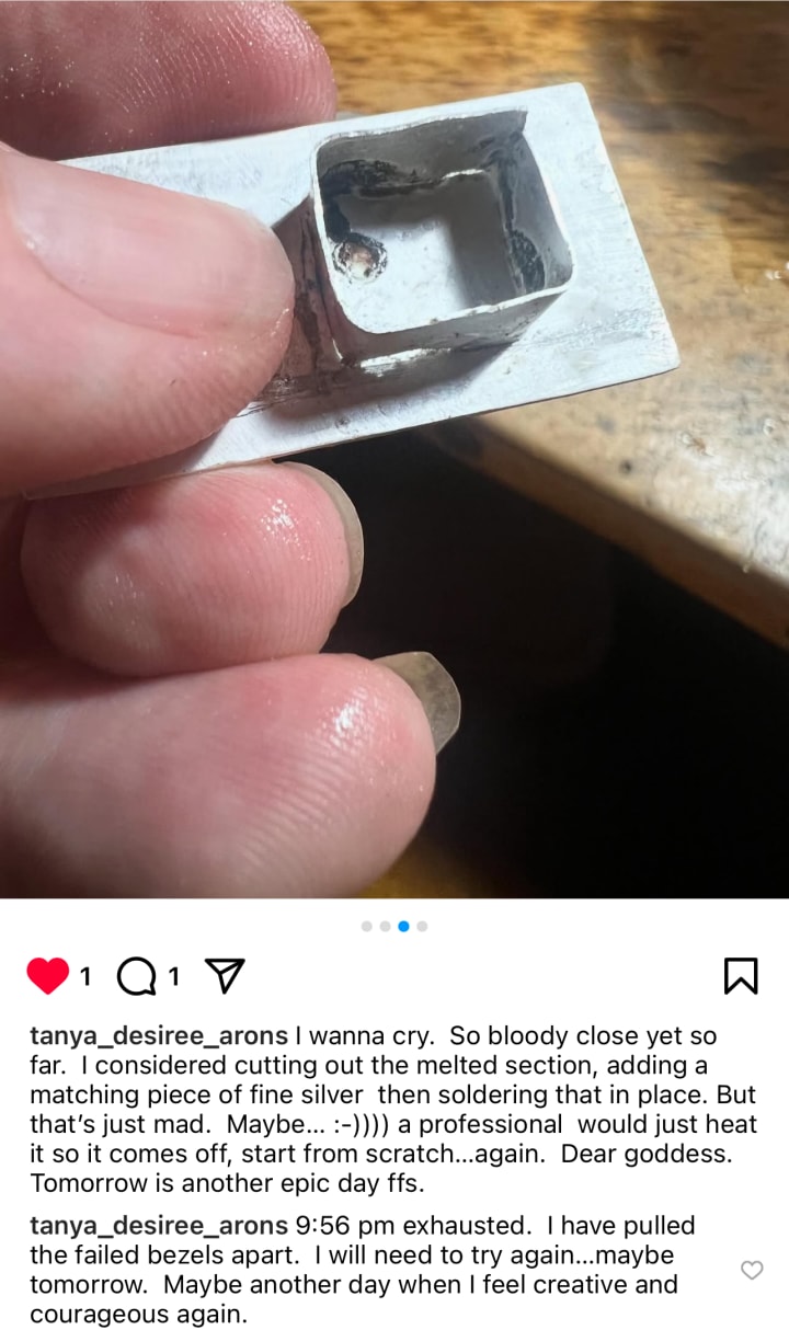 Yesterday I underwent a firestorm of emotions, rapid cycling trauma activations and rather intense anxiety. But as always…I fought through it. I tried to distract my brain by making jewellery which soothed me somewhat initially, but when I melted the bezel I was thrown back into the abyss of failure/atrophy/frustration and sank into my own hell loop again.