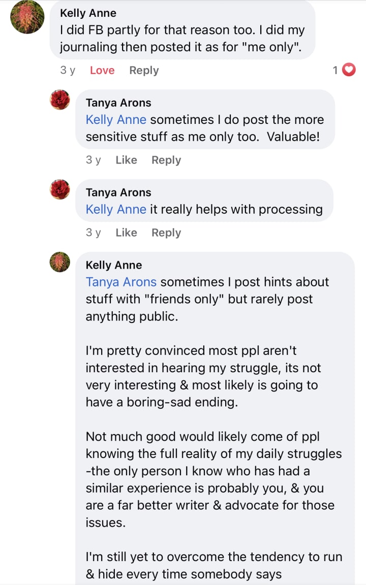 I write about my life experiences. I write about complex ptsd, the agonies, the angst and my post traumatic growth. About Beauty, Truth and Honour and little vignettes of comfort from the spirits that love me: living and dead. I also Dance!