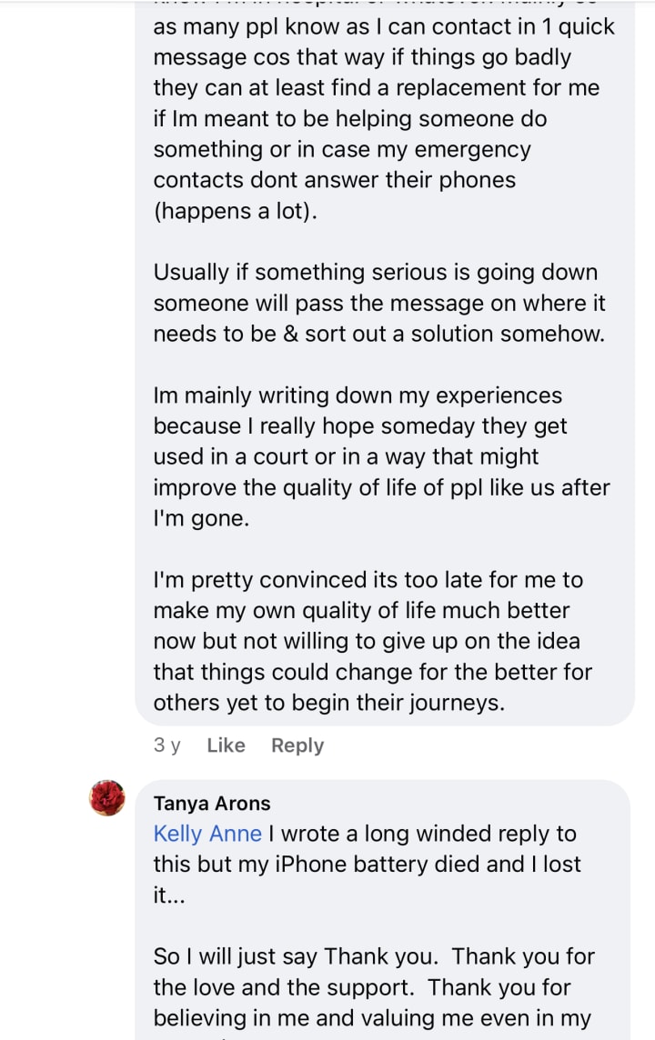 The Tanya, even in her rare and almost miraculous breakdowns is a force to be reckoned with but I am grateful for my psychiatrist who never lets me down. Imagine if I had a lover or partner that cared that much for me? What my life could be like? Just wow.