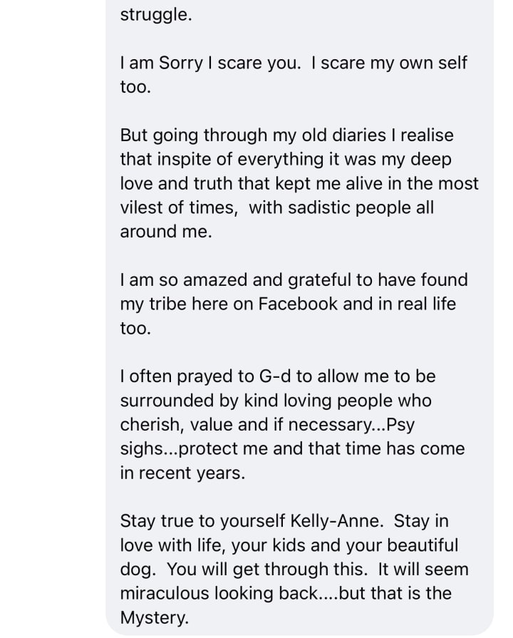 Honestly it is hard to read and relive. But it’s MY life and I can’t change history or the vile epic bullshit I was put through.