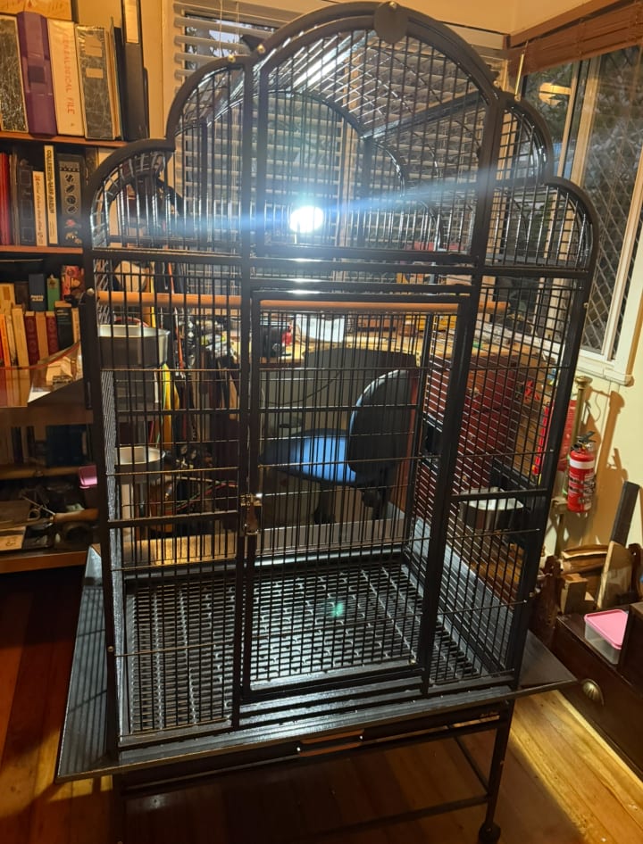 Then I came home just after 3 pm and hit the ground running to finish installing his cage. Then I worked until 7 pm, wrapping copper wire around the gap between the top and the door. I ran out of copper wire. I need to do the back as well. I will go to Bunnings tomorrow to buy more copper wire.