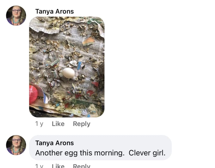 Today I went to look for eggs and was surprised and bemused to discover a very big Tabitha or Elvira egg in the wooden nest in the Silkie coop. Like, talk about a take-over bid! I had to chuckle to myself as even the silkies rarely lay in the boxes. So funny.