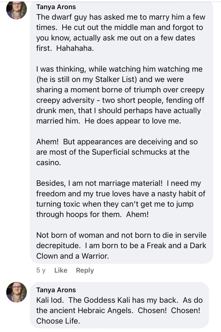 I tell you what, I bounce back real fast these days, like a cat on a hot tin roof. I also observed how calm I remain in the face of humiliation. Old me would have torn hair out. His hair. I guess it's nice to be a mellowed out loveless old bag that no one ever really wanted. I even said, “Hey I've been alone for 20 years. Nothing fazes me”.
