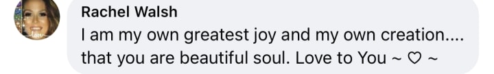 I am my own greatest joy and my own creation. Blessed Be!