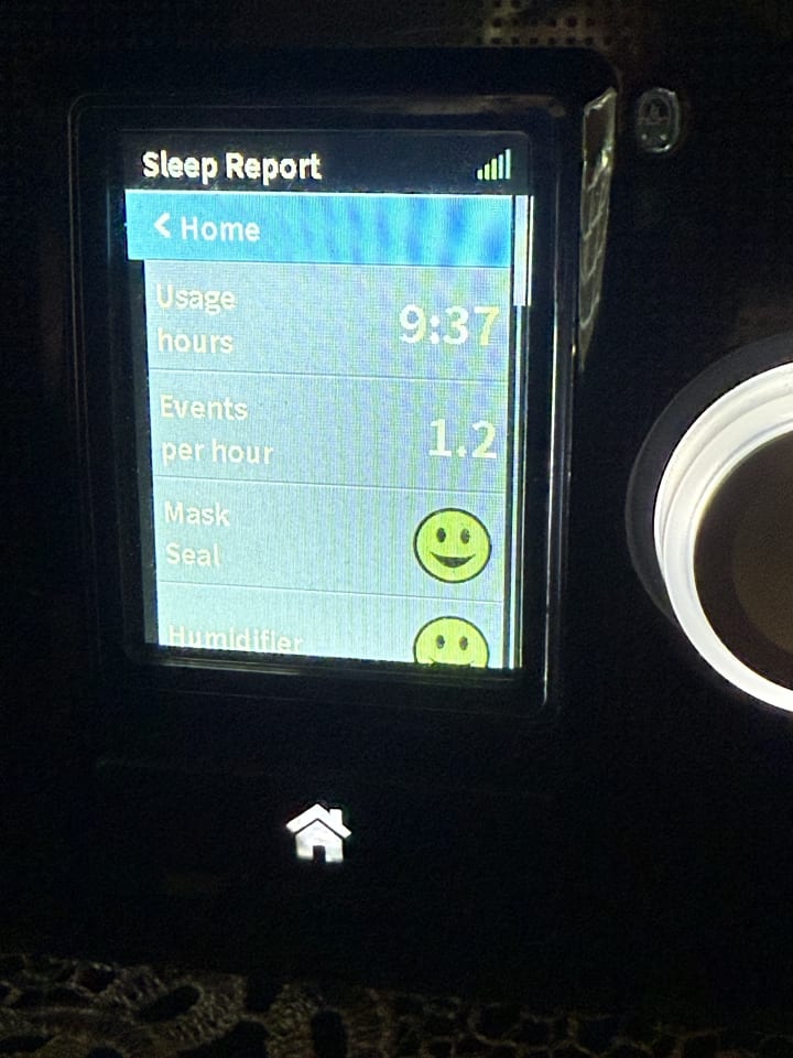 I have technically slept for 5 hours according to the cpap machine but that is not quite true. I have drifted back into full consciousness each time and have laid here like a floating mullet unable to reach REM.