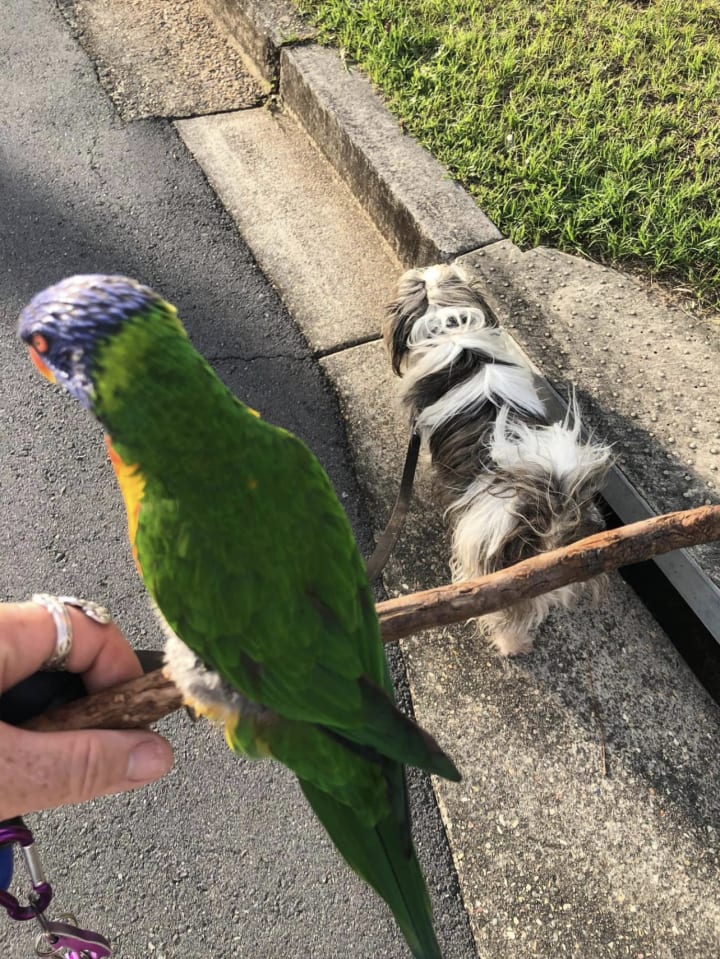 We walked back to my place and opened the gates and brought the dogs in and Koko and Bobo had a happy little romp around my garden. We gave them a ball and a rope toy to play with. They had a blast.