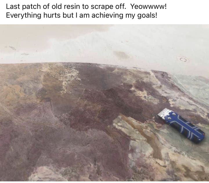 Yayyy finished sanding down the marble. Now just have to wait for the money to buy resin then I can finish off both tables! Woot!