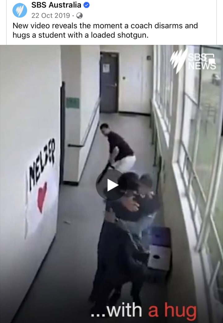 But a hug saved this man’s life and the lives of children this day. A hug. A sacred gifting of heart and soul. A tiny demarcation between love and hate, life and death.