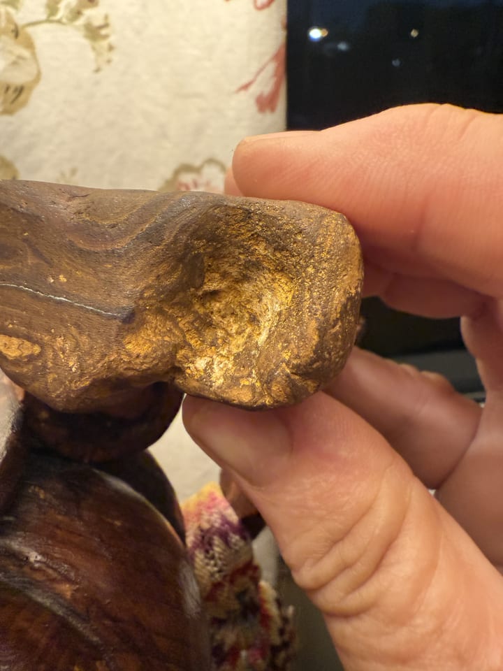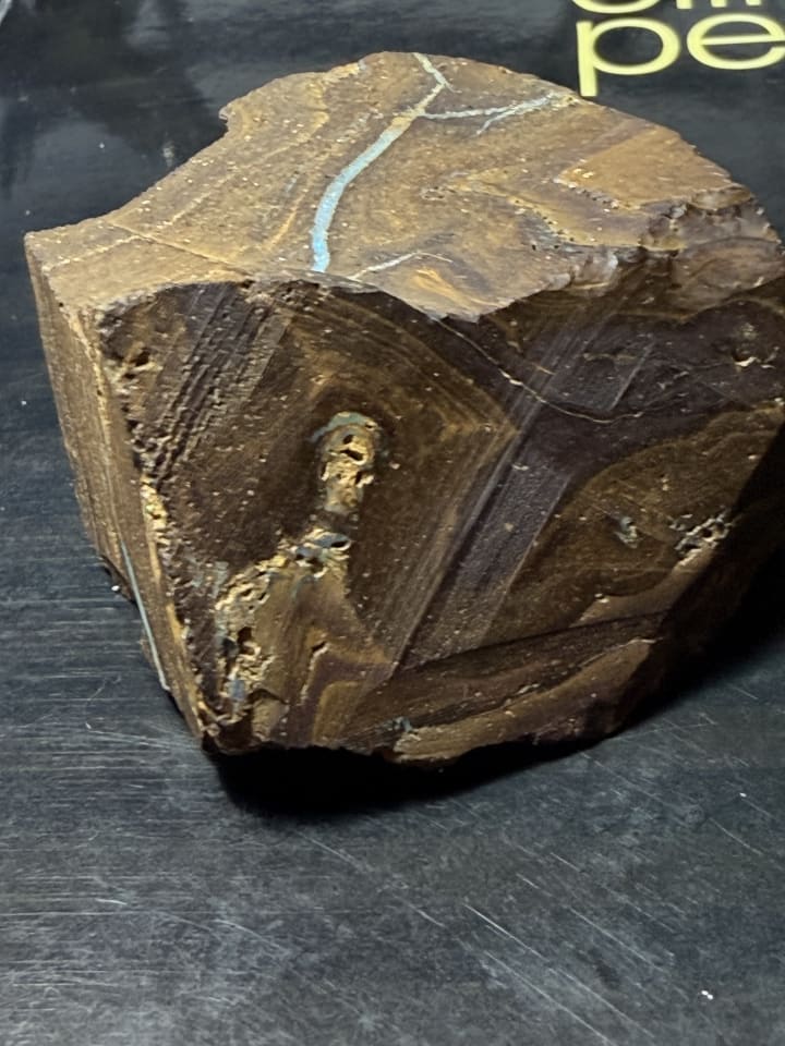 6:16 pm sitting at my bench…exhausted after today’s boulder opal cutting. I was staring at the third chunk of boulder opal, contemplating what a big job it will be as it’s slightly larger than than the others, when I saw another face.