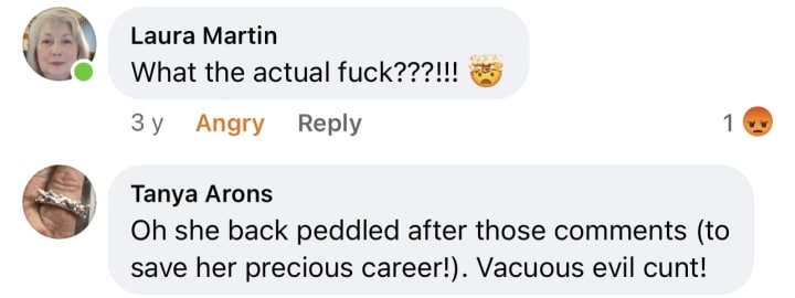 Disgraceful!!!! Oh well at least she didn’t tell the adult survivors to get a haircut and a real job as my half sister told rape victims at the Rape Advisory Centre. The fucking filthy Thing!!!