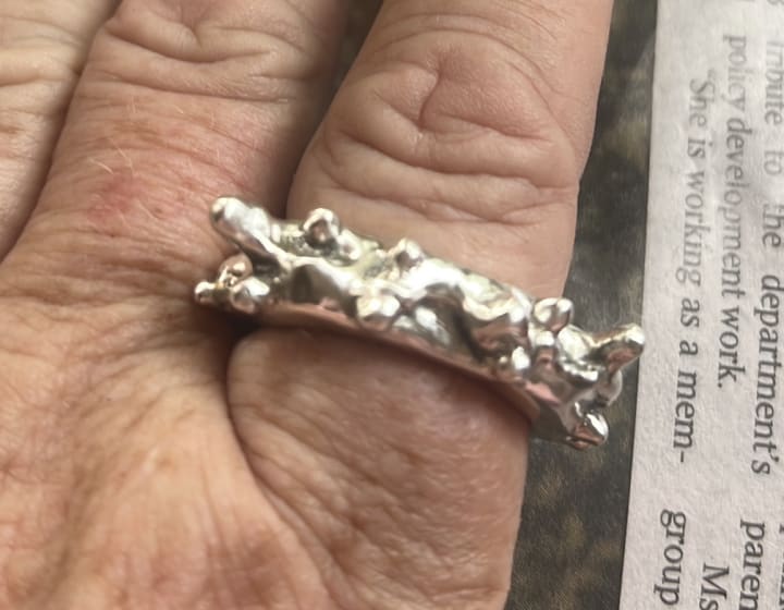 I worked on my ring all day from 10 am until 4 pm. Exhausted but satisfied with my achievement.