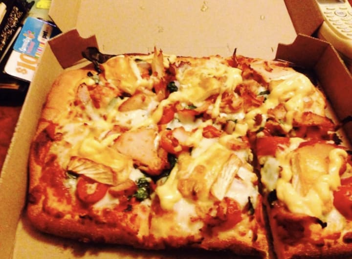 10.06 pm. Home from Dominoes, with pizza. I can't remember the last time I went to that store. Seemed to be new owners. 2 friendly guys, with broad smiles who were great! And a tad sexy!