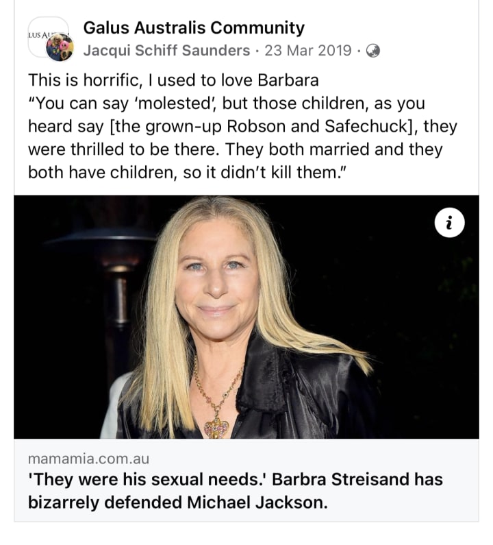I will no longer support Barbra Streisand. She can join “Stewart World” where the real world does not exist and little sisters are declared Dead.