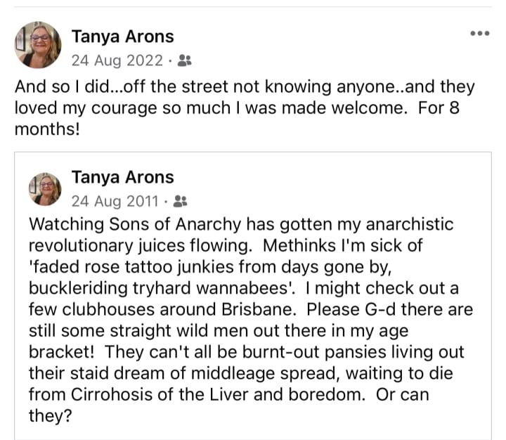 To be honest I had more respect and fun hanging out with an outlaw motorcycle organisation for 8 months than I have been treated anywhere else. Yes, it went bad at the end, but not due to the old guard or the President who admired and treated me with lovingkindness but due to the young guard who were in effect taking over the organisation which as the young often do, led to the Fuck Ups that brought all Bikies into disrepute and led to a fascist govt policy that is grossly unjust in my opinion.